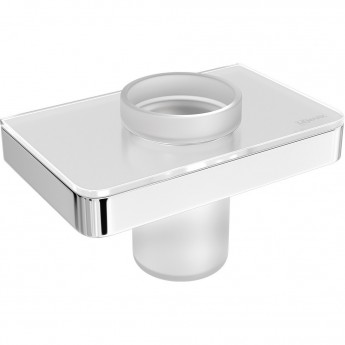 Стакан для зубных щеток LEMARK GLASS LINE с держателем хром/белое стекло